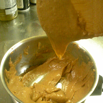 2.滑らかになったら、溶かしバターorサラダ油を入れて混ぜる。